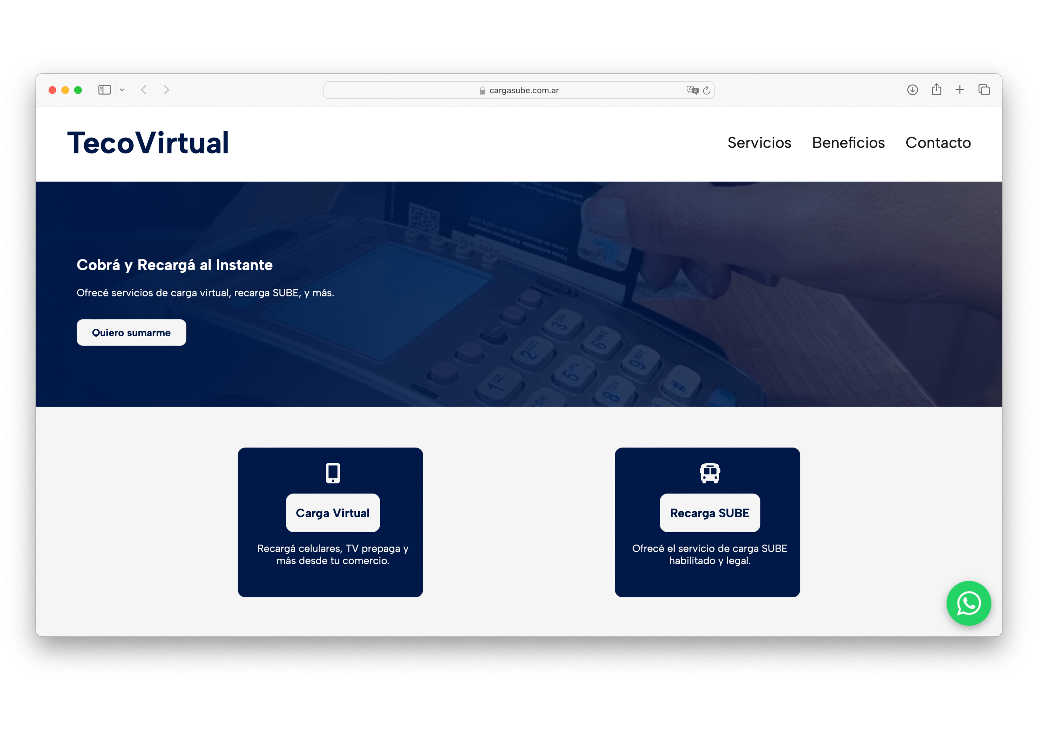 Diseñamos una landing page informativa para un servicio de carga virtual y recargas SUBE. El enfoque fue directo y funcional, permitiendo una experiencia rápida también en dispositivos móviles.