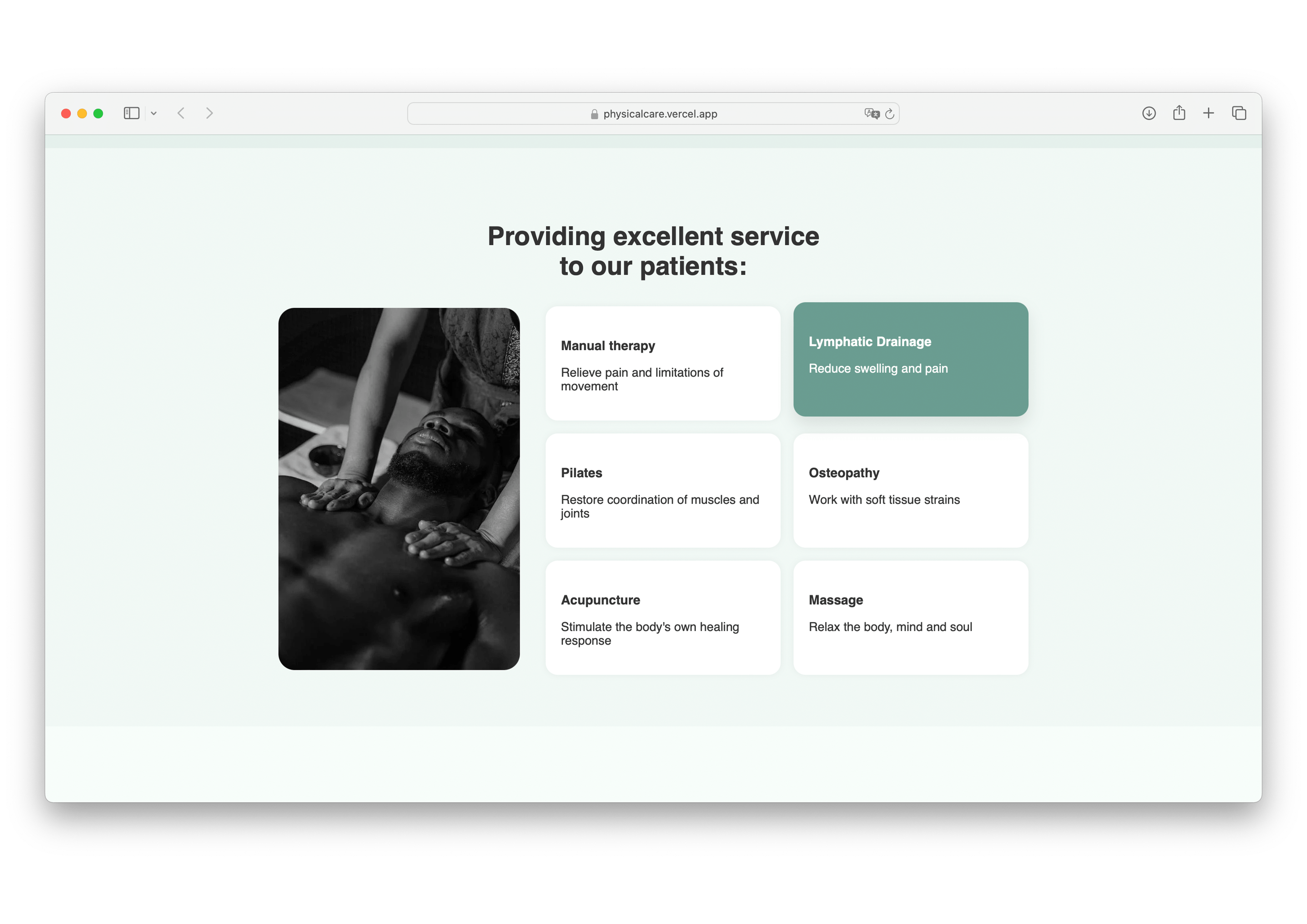 Desarrollamos una landing institucional en inglés para un centro de fisioterapia. El sitio incluye información de servicios, beneficios, testimonios y un llamado a la acción claro para tomar contacto.
